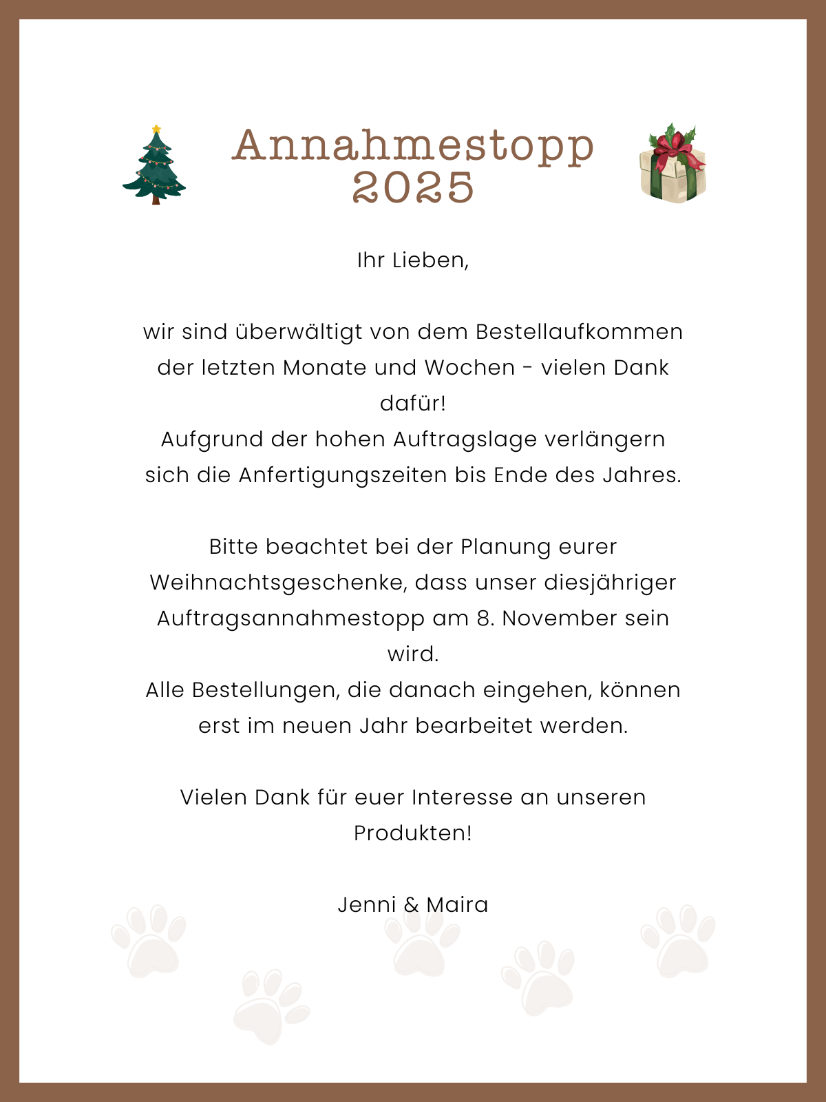 Mit unseren handwerklichen Stücken, bringen wir den hohen emotionalen Stellenwert den unsere Hunde in unserem Leben einnehmen zum Ausdruck.